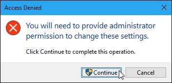 次のダイアログボックスが表示された場合は、[続行]をクリックして、ショートカットのプロパティを変更するための適切な権限を付与します。