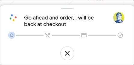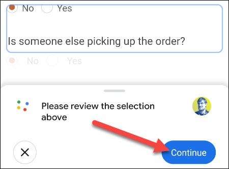 あなたがあなたの食べ物を選んで終わったら、チェックアウトに進みます。これはGoogle Assistantが物事を仕上げるように再表示されるところです。最終的な選択をするように求められます。 「続行」をタップしてそれらを進めます。