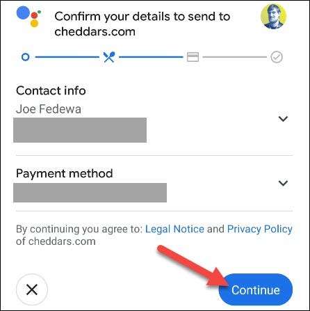最後に、連絡先情報と支払い方法を入力するように求められます。 「続行」をタップして終了します。