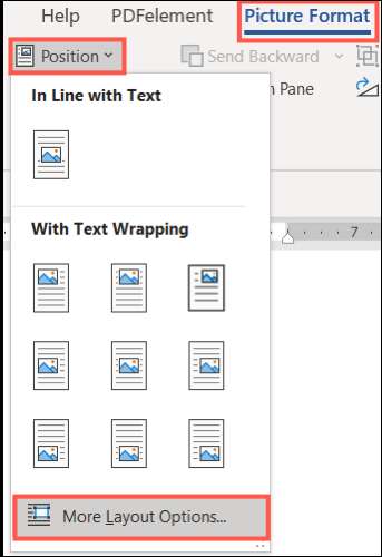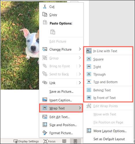 - 画像を右クリックして、カーソルを移動してテキストをラップして、ポップアウトメニューのオプションを表示します。