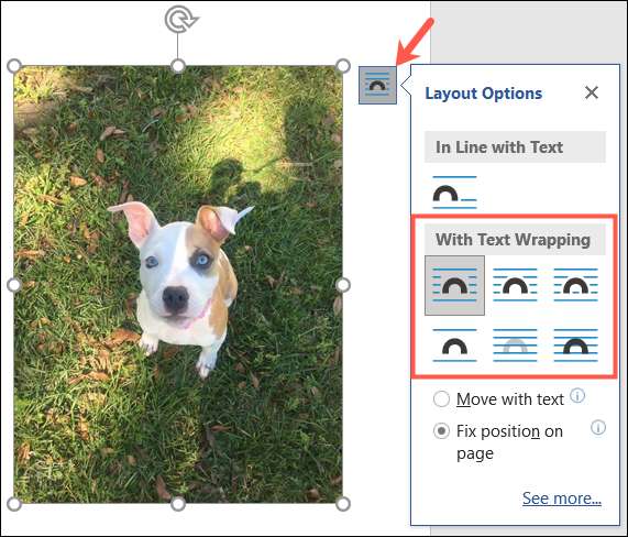 - 画像を選択して、その右側に表示されるレイアウトオプションアイコンをクリックします。