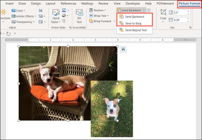 特定の画像を上にするには、右クリックするか、画像フォーマットタブを右クリックして、使用している画像の数とそれらにどのように配置したいかによって、「前方に進む」または「前面に持ち込む」を選択します。
