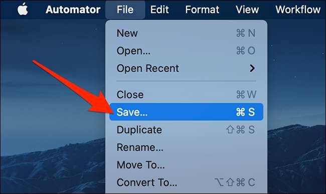 ファイル&gtをクリックしてアプリを保存します。 Automatorのメニューバーに保存します。