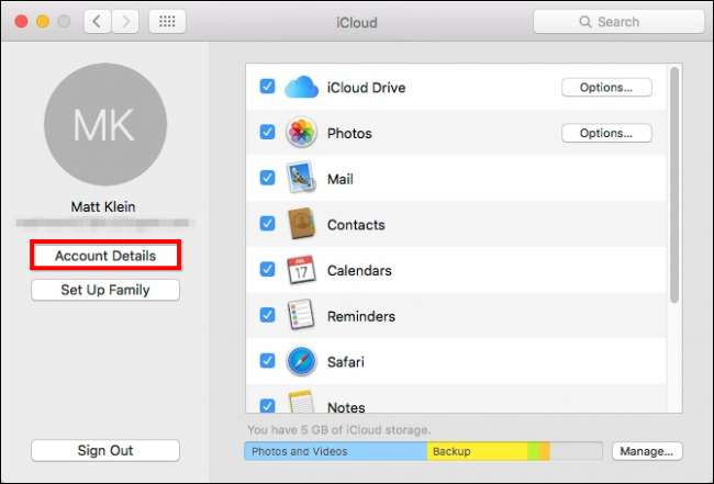 次に、iCloudシステム環境設定で「アカウントの詳細」をクリックします。