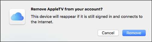 Macの場合と同じように、iCloudデバイスの削除を確認するよう求める同じ種類の確認ダイアログが表示され、まだサインインしている場合は、インターネットに接続すると再び表示されることを通知します。
