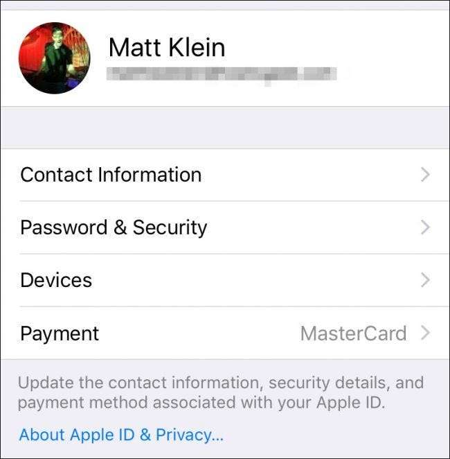 iCloud設定で、名前をタップしてアカウントの詳細にアクセスします。