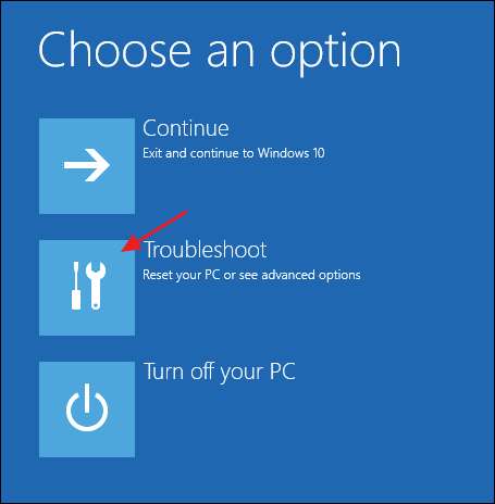 その後、Windowsはリカバリ環境をロードします。最初のページで、「トラブルシューティング」オプションをクリックします。