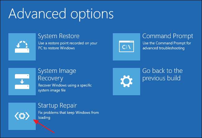ほとんどの場合、Windowsにスタートアップの自動修復を試行させる必要があります。マスターブートレコードの修正またはブートセクターの再作成を試みるだけでなく、他の一般的な起動の問題もスキャンして修正しようとします。 [詳細オプション]ページで、[スタートアップ修復]をクリックします。