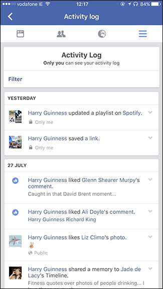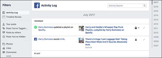 これで、Facebookでこれまでに行ったことすべてが1つの大きなリストに表示されます。