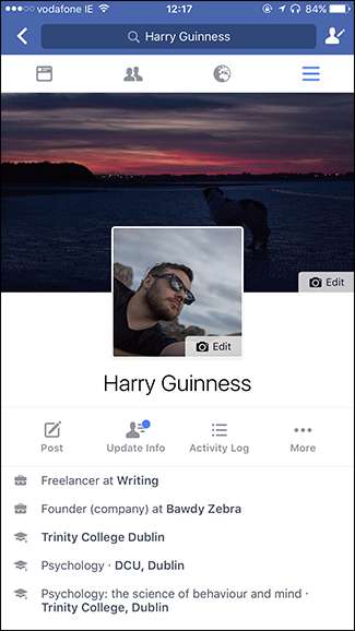 モバイルアプリでアクティビティログを表示することもできます。プロフィールに移動し、カバー写真の下にある[アクティビティログ]をタップします。