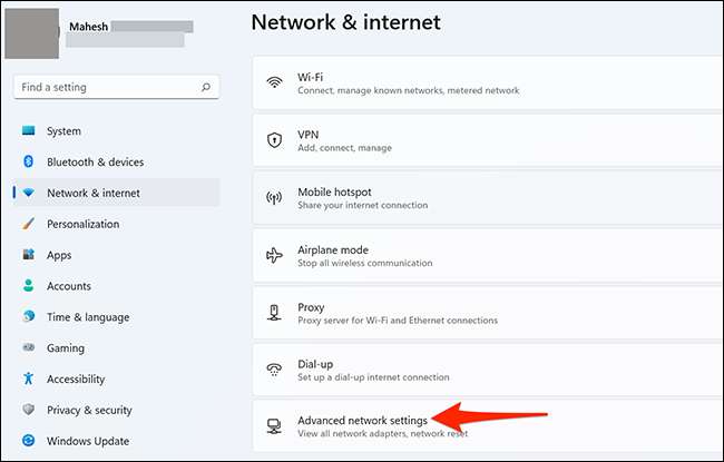 「ネットワークとアンプ」を下にスクロールします。インターネットを画面し、「高度なネットワーク設定」を選択します。