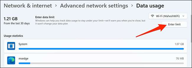 次に、[Wi-Fi]ドロップダウンメニューの下にある[Limitの入力]ボタンをクリックします。