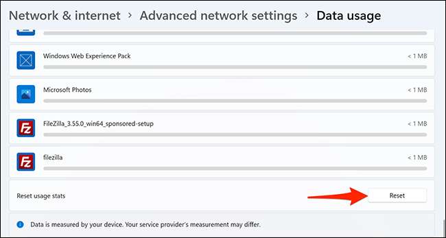 Windows 11でデータ使用統計をリセットする
