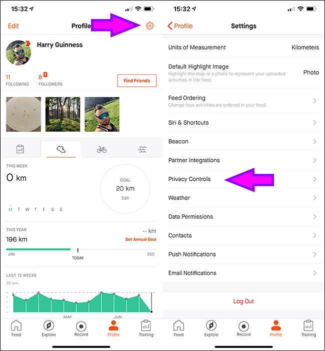 Stravaのプライバシー設定へのアクセス