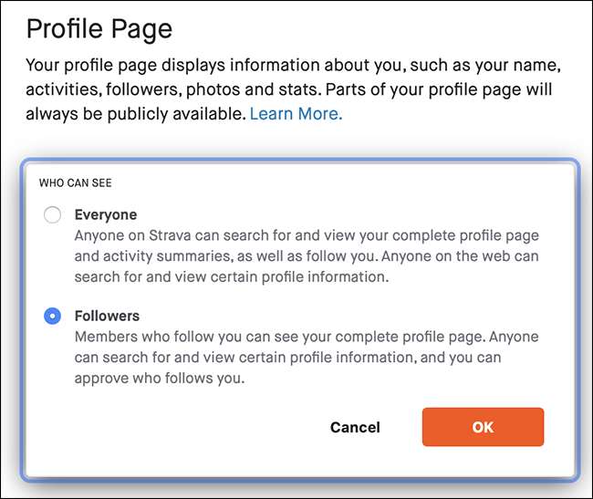 Stravaの設定は少し複雑で混乱を招きます。自分に適したオプションを探すことに興味がない場合は、プライバシーをフォロワーだけに制限することができます。つまり、すべての新しいフォロワーを承認する必要があります。