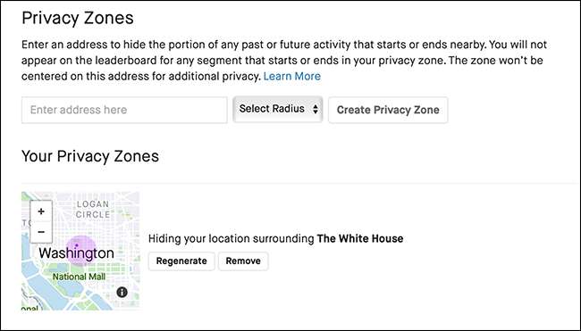 リーダーボードで競争できるように活動を共有したいが、自宅や職場の住所を明かすリスクを冒したくない場合は、プライバシーゾーンを作成できます。実行がプライバシーゾーン内で開始または終了する場合、その部分は他のすべての人から隠されます。