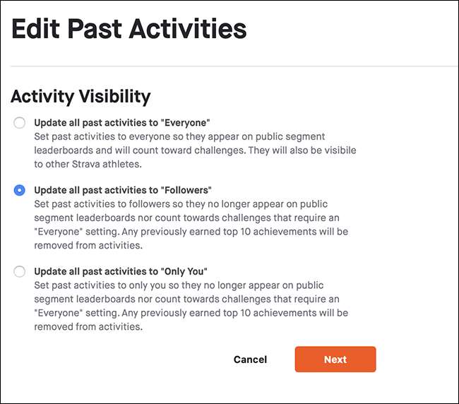 過去のすべてのアクティビティの表示を「Everyone」、「Followers」、または「OnlyYou」に変更できます。必要なオプションを選択し、「次へ」をクリックします。