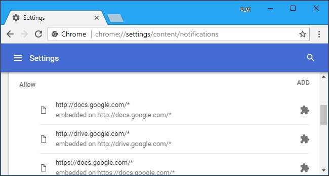 このページには、通知の表示を許可したWebサイトが表示され、指定したWebサイトは通知を表示できません。