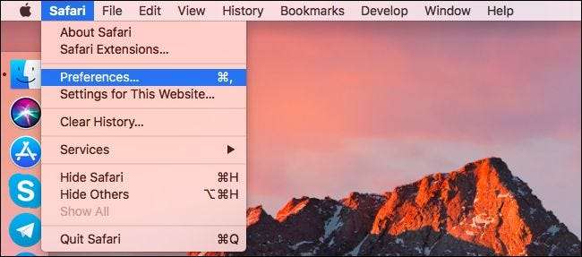 Safariを使用すると、Webサイトが通知を送信する許可を要求するのを防ぐことができます。このオプションを見つけるには、「Safari」>「設定」をクリックします。