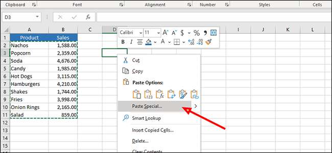 あなたの結果を表示したい空のセルを右クリックします。 「貼り付けオプション」の下にある[特別な[特別]をクリックします。
