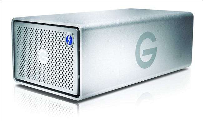 もう少し堅牢なもののために、適切な貯蔵ソリューションに投資することを検討してください。 目的の組み込みRAIDエンクロージャ あなたの机の上に座り、膨大な量の柔軟性を提供します。 RAIDを使用すると、単一のボリュームまたはミラー化されたバックアップを含む、さまざまな方法で複数の外付けハードドライブをマッピングできます。データの冗長性に焦点を当てる場合は、最小限の煩わしさで失敗した場合はドライブをスワップアウトすることができます。