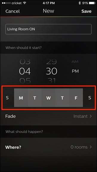 次に、[いつ開始する必要がありますか?]で、Hueライトをオンにする時間を選択します。