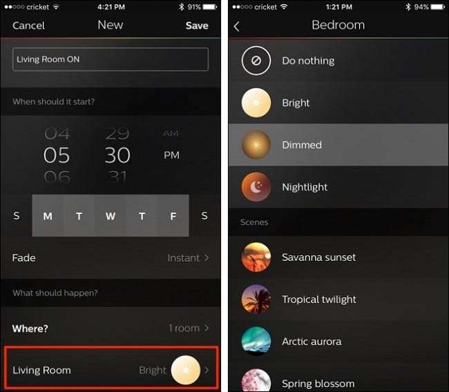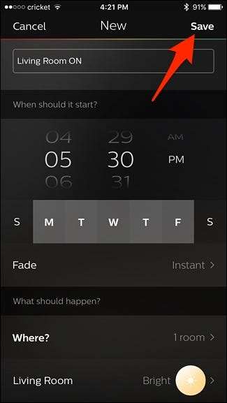 それ以外は、照明をスケジュールに設定するのは非常に簡単です。PhilipsHueアプリにこの機能がついに搭載されたことを本当に嬉しく思います。