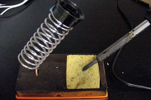 熱を適切に伝導するために、はんだごてには古いはんだがない必要があります。空気にさらされた後、それは酸化し、したがって熱に対して絶縁します。すべてを迅速かつ効率的に適用できるように、熱を伝導させたいと考えています。先端が汚れているということは、アイロンを長く保持する必要があり、PCBに熱による損傷を与える危険があることを意味しますが、誰もそれを望んでいません。濡れたスポンジを手元に置き、はんだごてが完全に加熱されたら、スポンジにそっとこすりつけて古いはんだを取り除きます。先端は素晴らしくて光沢があるか、少なくともそれに非常に近い必要があります。