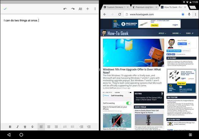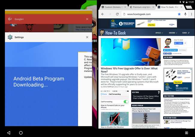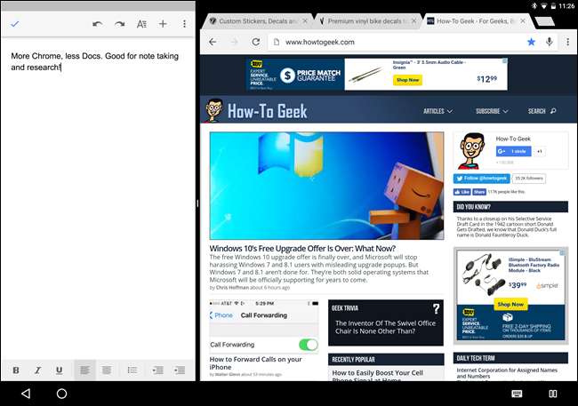 アイコンをタップして新しいアプリを読み込むとすぐに、画面の未使用部分で自動的に開き、Chromeを元の位置にスライドさせます。そして、そこに行きます—一度に2つのこと。それには何もありません。