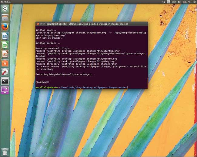 最初のコマンドは、必要なソフトウェアを提供するWhizzzkidPPAを追加します。 2番目のコマンドは、パッケージマネージャーを更新するため、新しいソフトウェアを確認できます。 3番目のコマンドは、必要なパッケージであるbingwallpaperをインストールします。
