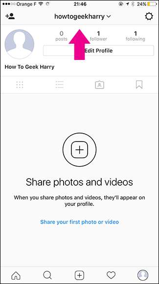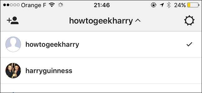これで、スマートフォンに2つのInstagramアカウントが設定されました。それらを切り替えるには、プロフィールページで、ユーザー名またはその横にある矢印をタップします。ドロップダウンから、使用するアカウントを選択します。