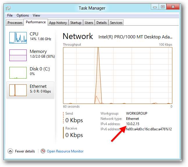 コントロールパネルを掘り下げることなく、実際にシステムのIPアドレスを確認できます。これは、多くのクリックを必要としていました。