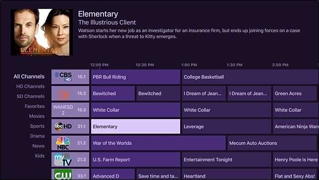 次、 チャンネルアプリをインストールする AppleTVで。 iPhoneやiPadにダウンロードすることもできます。 Apple TVバージョンの価格は25ドル(15ドル) iOSバージョン )、これはAppStoreで最も高価なアプリの1つになります。しかし、アプリが画面にケーブルのようなTVガイドも表示することを考えると、コストは間違いなくそれだけの価値があります。