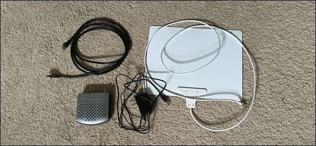 HDHomerunをインストールするには、デバイス、その電源コード、イーサネットケーブル(付属)、およびTVアンテナまたはケーブルボックスが必要です。私は使用しています 葉ができる このガイドのアンテナ。