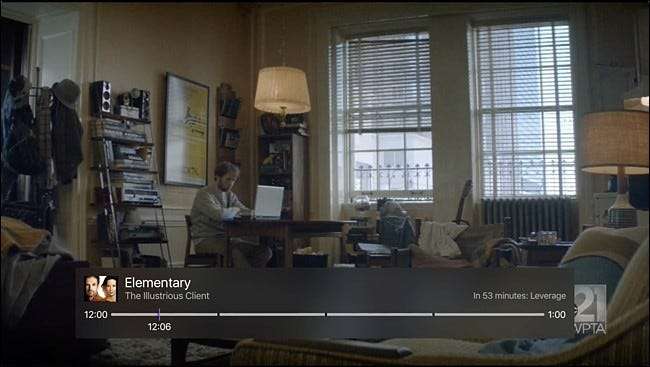 視聴するものを選択すると、すぐにそのチャンネルに移動します。また、下部にスクラブバーが表示され、テレビ番組の内容と、その後右側に放映されている内容がわかります。