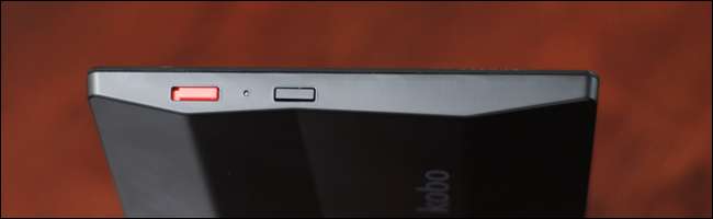 Aura HDの上部には、3つの要素があります。赤いスライダースタイルの電源ボタン(なぜ赤いのですか?ユニットの残りの黒いスタイルとはひどくずれているように見えます)、小さなLEDアクティビティ/充電インジケーターライト、およびフロントライトのオンとオフを切り替える黒いボタン。物事のための物理的なボタンがあるのはいいことですが、私たちは物理的なフロントライトボタンをあまり気にしませんでした。たとえば、Kindleでは、電球のアイコンをタップしてフロントライトを調整すると、潜在的な明るさの設定に大きな勾配があることがすぐにわかります。一方、Aura HDは最も明るい設定が有効になっているため、フロントライトを初めてオンにしたときに、完全にオフまたはオンでめちゃくちゃ明るいバイナリシステムであると簡単に考えることができます。 (フロントライトがオンの場合、ナビゲーションバーに小さなアイコンがあり、タップして設定を調整できます)。