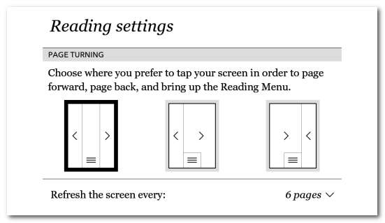フォントのカスタマイズに加えて、ページをタップしてめくる方法をカスタマイズすることもできます(この設定を見つけてうれしく思います)。