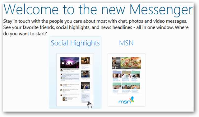 次に、ソーシャルネットワークからのハイライトを表示するか、MSNからのニュースの更新を表示するかを選択します。私たちは選びました ソーシャルハイライト Facebookの友達などからの情報を見ることができるので、これはメッセンジャーの新機能を体験するための最良の方法です。