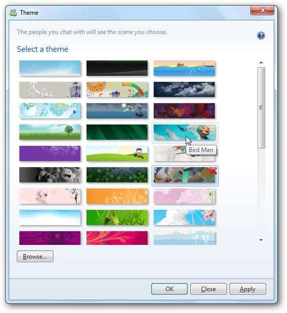 カスタマイズしたい人のために、新しいLiveテーマのいずれかを使用できるようになりました。そのほとんどは、Windows7のテーマに基づいています。