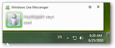 メッセンジャーは、コンピューターとうまく統合するためのいくつかの機能を提供します。新しいメッセージが届いたときの新しいトースト通知が含まれます。同じLiveIDにHotmailアカウントがある場合は、新しいメールを受信したときに同様のメッセージを受信します。