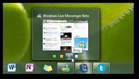 タスクバーアイコンには現在のステータスも表示され、Windows7のタスクバープレビューからワンクリックでオンラインステータスを変更できます。