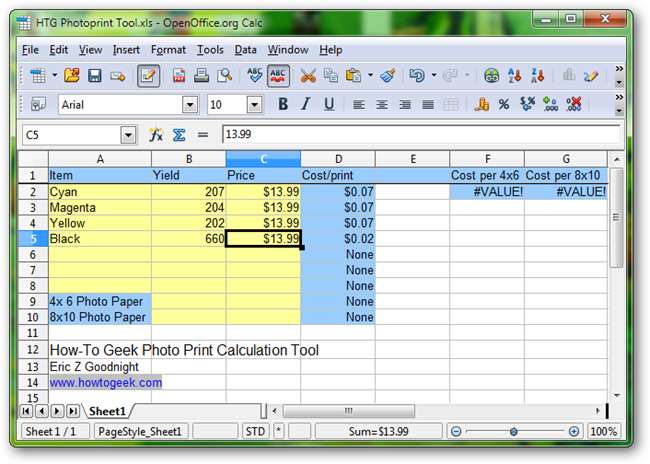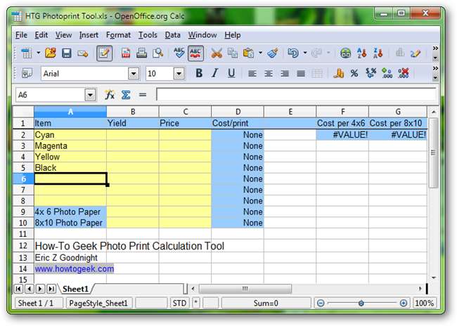 スプレッドシートソリューションを入手したら、OpenOfficeまたはExcel用のHTG写真印刷計算ツールをダウンロードします。