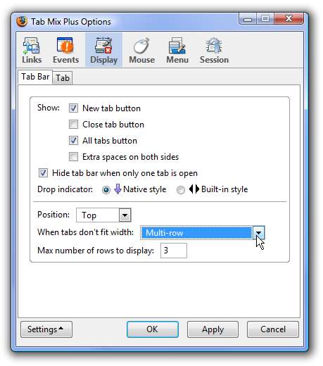 このオプションを設定するには、 タブミックスプラス拡張機能 インストールされています。その場合は、[ツール]メニューから[タブミックスプラスオプション]ダイアログを開きます。