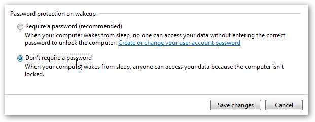 これで、[パスワードは不要]ラジオボタンをクリックして、[変更を保存]ボタンを使用できます。
