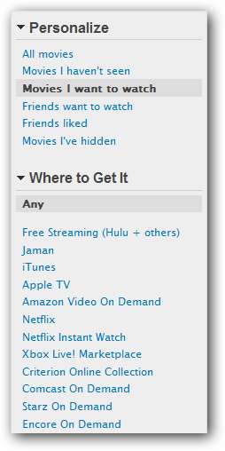 無料の映画、特定のジャンル、またはそれらを提供するサービスのみなど、さまざまな条件を使用して検索を絞り込むことができます。