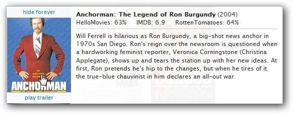 映画のサムネイルにカーソルを合わせると、さまざまな映画サイトからストーリーと評価の簡単な説明が表示されます。