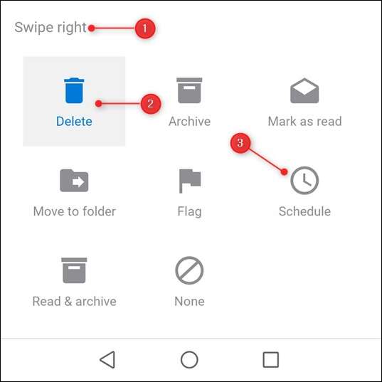 受信トレイに戻って右にスワイプすると、スケジュールアクションが表示されます。