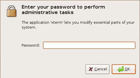 コマンドの前に「gksu」コマンドを付けることで、rootとして任意のプログラムを簡単かつ迅速に実行できます。たとえば、Alt + F2を押してクイック実行ダイアログを表示し、xtermをrootとして起動しましょう。