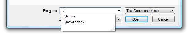 これが私の友人を非常に驚かせた理由です…ファイルを開く/保存ダイアログが開いたらすぐに..(期間)と入力してEnterキーを押してください: