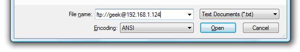 次の構文を使用して、FTPサーバーに接続してファイルを開くこともできます(これについて言及してくれたfreddoに感謝します)
